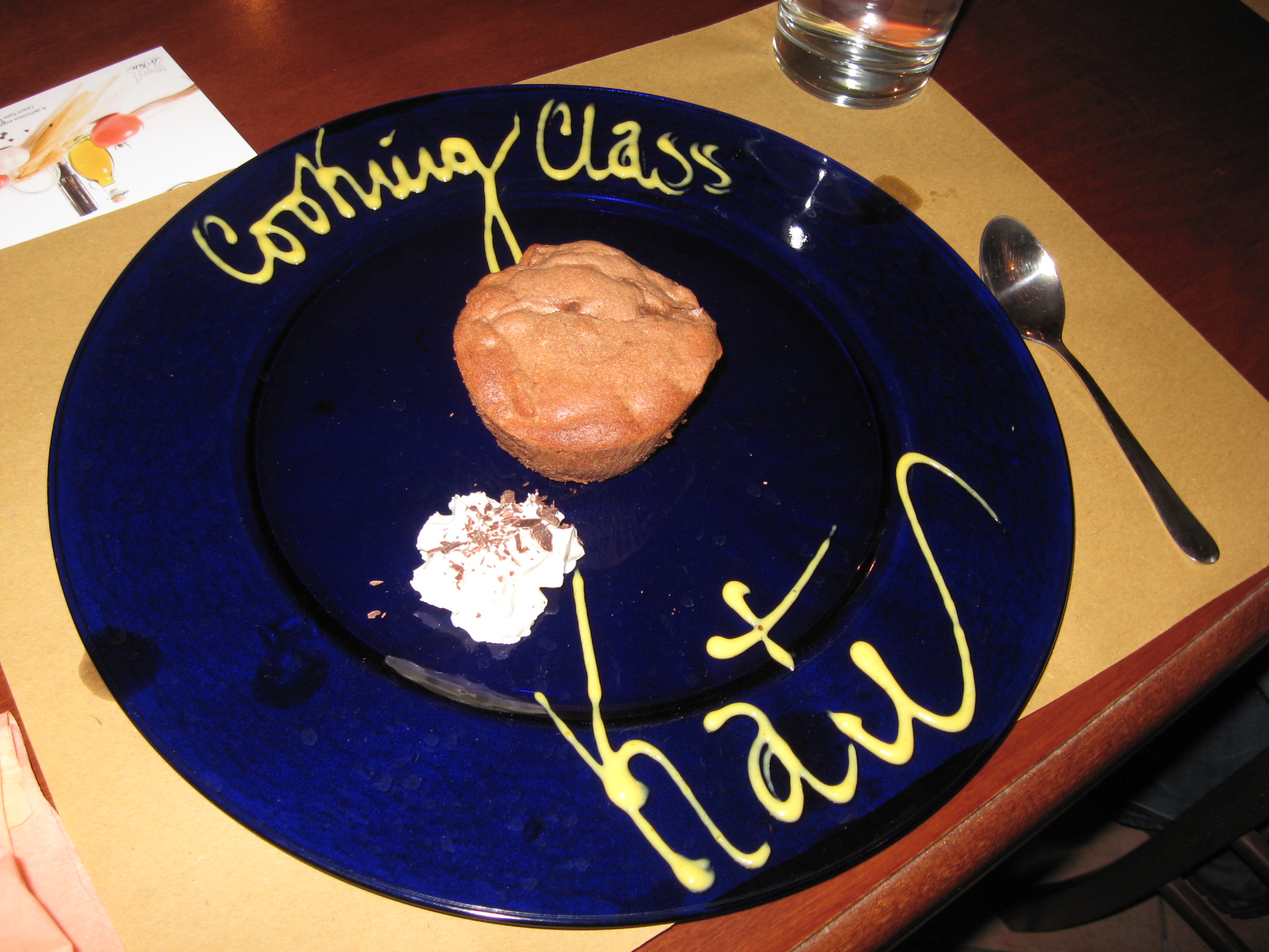 Roman version of Chicken Cacciatore (no tomato!) and roasted rosemary potatoes. And dessert was a chocolate and pear soufflé. All ingredients were seasonal and sourced locally.