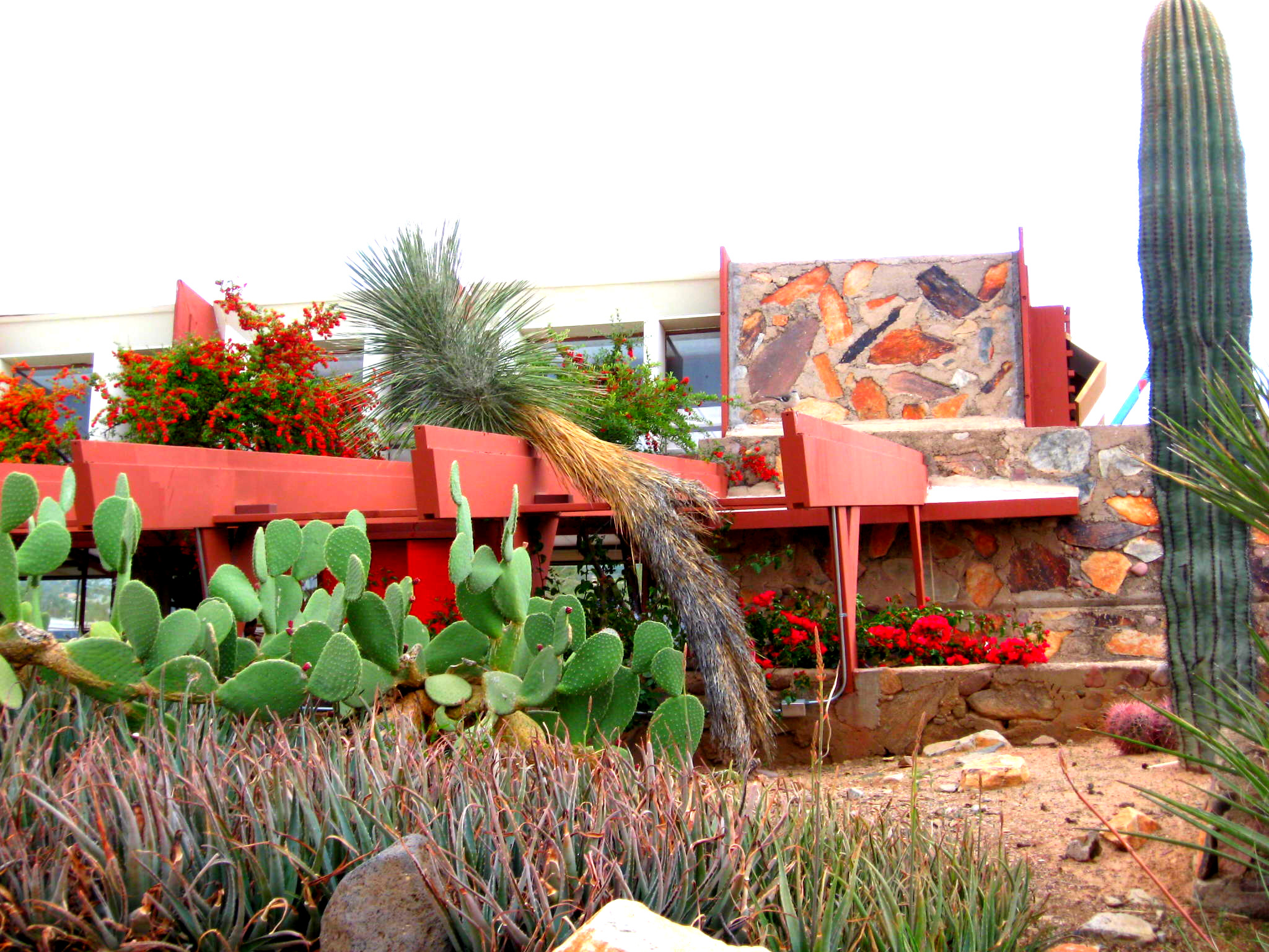 Wright had been invited by former students to come out and help them build a masterpiece of a hotel in the desert. It didn’t take long for the difficult artiste to have a falling out with his students (Frank liked to have things his own way, you might say). The architects went on to create what is now the Arizona Biltmore, which is well worth a visit in its own right, if you love FLW-influenced buildings. It’s really gorgeous.