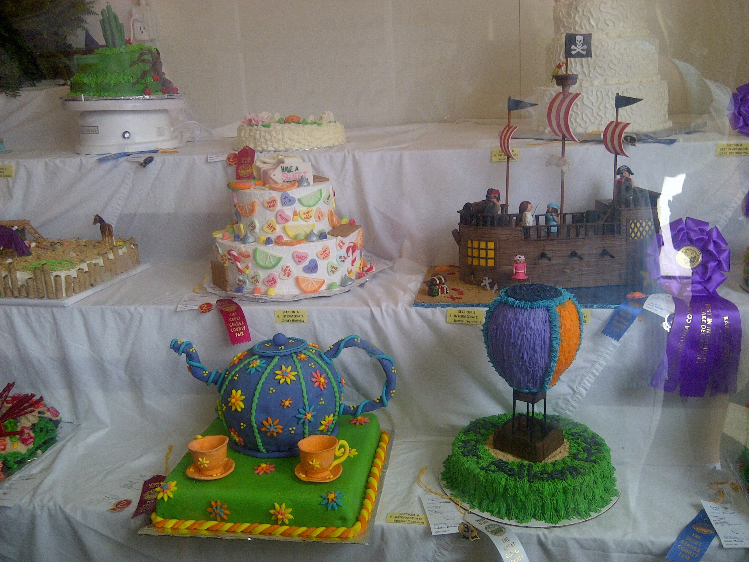 I enjoyed walking the aisles admiring handmade quilts, elaborately decorated cakes worthy of any “Cake Boss” show, jars of pickled peppers and watermelon rinds, and much more. Blue, red and yellow ribbons indicated who had excelled in their category. I saw some adorable miniature horses in one pavilion, and wondered if the glossy cows in another were destined for dinner at a steak house or a life grazing and giving milk on one of the local farms.