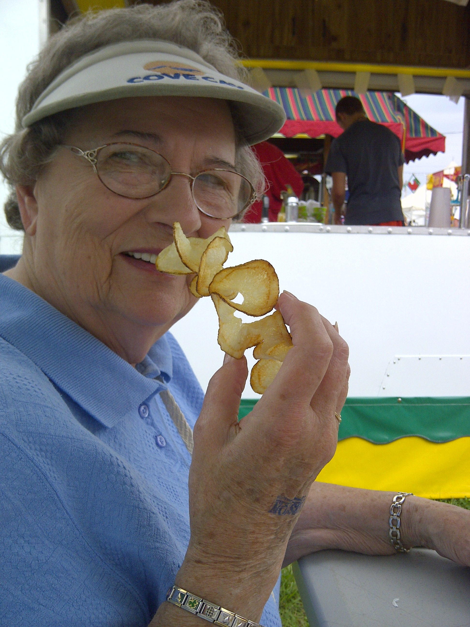 here in Ohio. I hadn’t been to a fair in years and had forgotten what fun it can be. We arrived hungry and ready to treat ourselves to “fair food” – corn dogs, a sausage sandwich with peppers and onions for Bob, and a tricky kind of potato chip that comes in one long, swirly piece for my mom. (Sadly, there wasn’t room after all that for either funnel cakes or fudge, both of which were on my “must eat” list!).
