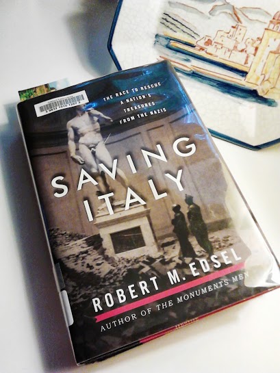 IMG_20130727_090813I thought it might be fun (for me – maybe for you, too?) to occasionally share information about a book I’m reading that is related to travel. Right now I’m reading a new release called Saving Italy by Robert M. Edsel. It’s the story of the “Monuments Men” – American military personnel who tried to work within the constraints of, well, WORLD WAR II to protect and save as many of the irreplaceable paintings, sculptures and notable historic buildings from destruction.