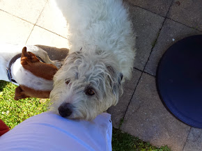 The dogs at Harpersfield Vineyard detect aromas of Mick & Rich on my pant leg.